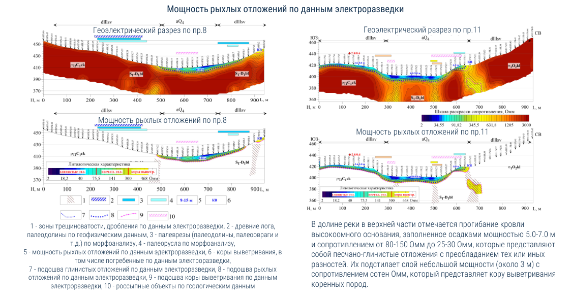 • Геоэлектрические разрезы по профилям.